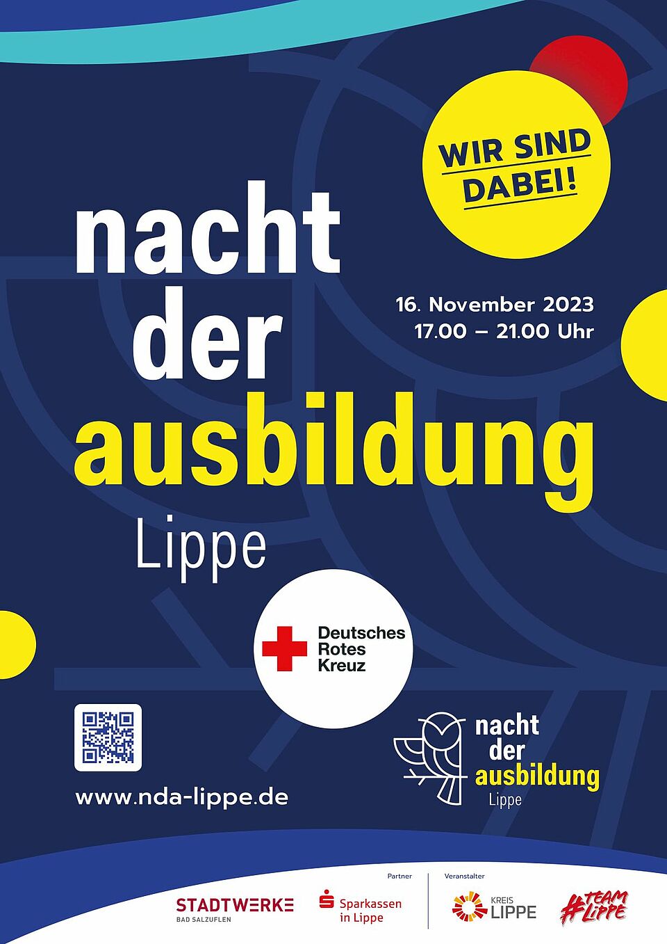 Zum ersten Mal sind wir in diesem Jahr bei der Nacht der Ausbildung Lippe dabei. Über 100 Arbeitgeber aus Lippe öffnen ihre Türen für Bewerber, Interessierte, SchülerInnen und StudentInnen. An dem Abend sind wir für euch in der DRK-Zentrale auf der Pagenhelle 15-17 in Lemgo und in der DRK-Betriebskita am Klinikum Detmold, Hofstraße 5, da. Kommt vorbei! Wir informieren euch über mögliche Ausbildungsplätze und Einstiegsmöglichkeiten. Und nicht nur das - ihr könnt auch an unserem Gewinnspiel mit tollen Preisen teilnehmen. Wir freuen uns auf euch!