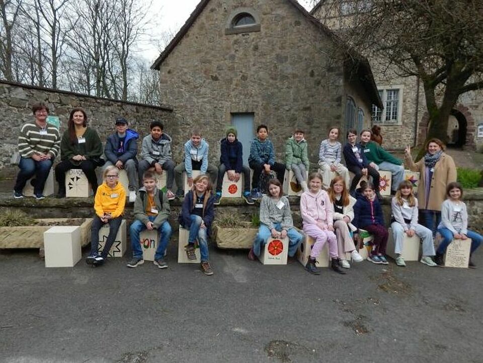 An drei aufeinanderfolgenden Tagen hatten die Kinder so die Gelegenheit, ihre eigene Cajón, ein aus Südamerika stammendes Percussion-Instrument, zu bauen. Gemeinsam bearbeiteten die Viertklässler Holz, erstellten Schellen aus Kronkorken und gestalteten ihre Kistentrommel ganz nach ihren Vorstellungen: von historischen Symbolen wie dem Sternberger Stern und der Lippischen Rose hin zu musikalisch inspirierten Motiven war alles dabei. Neben dieser Einführung in das Arbeiten mit Holz begeisterte Frank Jendreck, der den Kurs vom Projektpartner Lippe Bildung anbot, während kleiner Führungen die Kinder mit seinem umfangreichen Wissen zur Geschichte der Burg. „Es ist beeindruckend, wie motiviert die Kinder zusammenarbeiten und mit welch einer Freude sie die Burg erforschen“, berichten Olgeen Hussein und Regine Vollmann, die das Projekt in diesem Jahr seitens der DRK-OGS begleiteten. Zum Abschluss des Projektes präsentierten die Kinder zusammen mit weiteren Schülerinnen und Schülern aus Extertaler Grundschulen die eingeübten Trommelrythmen vor kleinem Publikum im Rittersaal der Burg.