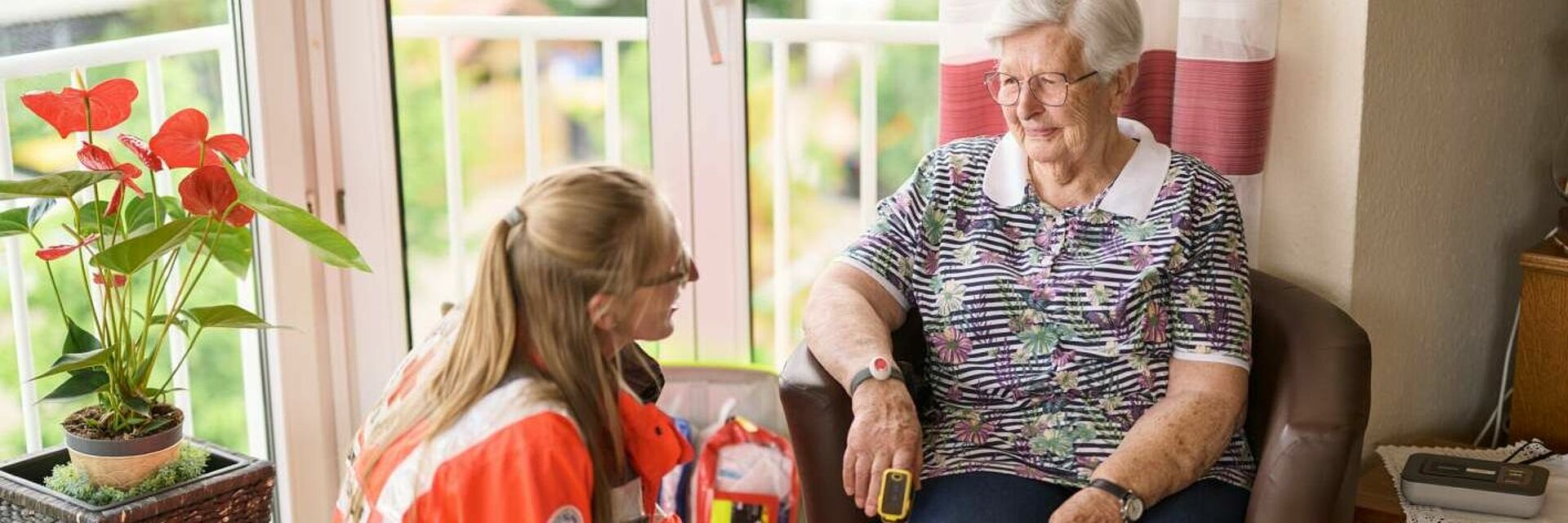 Das DRK bietet verschiedene Hausnotrufsysteme, angepasst an Ihre individuellen Bedürfnisse. Die Standardlösung besteht aus einem Basisgerät und einem Funksender mit Notrufknopf – tragbar am Handgelenk oder als Halskette.